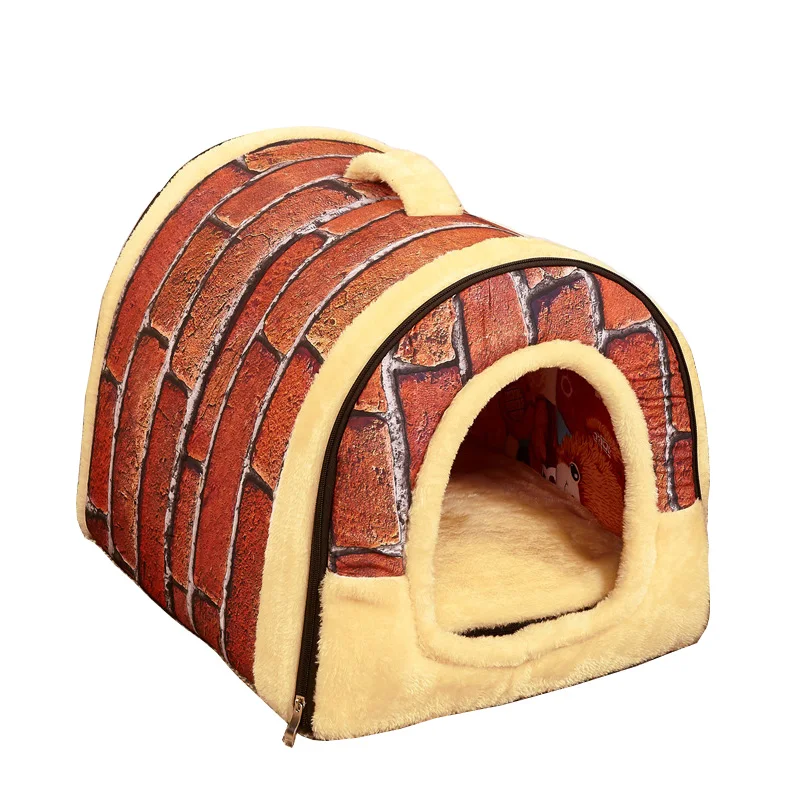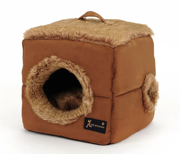 Мягкий домик для домашних питомцев Portable Dog House тёплый лежак для собак и кошек Коричневый CRL