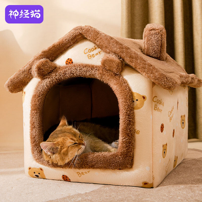 Мягкий домик для домашних питомцев Portable Dog House тёплый лежак для собак и кошек Коричневый MNG