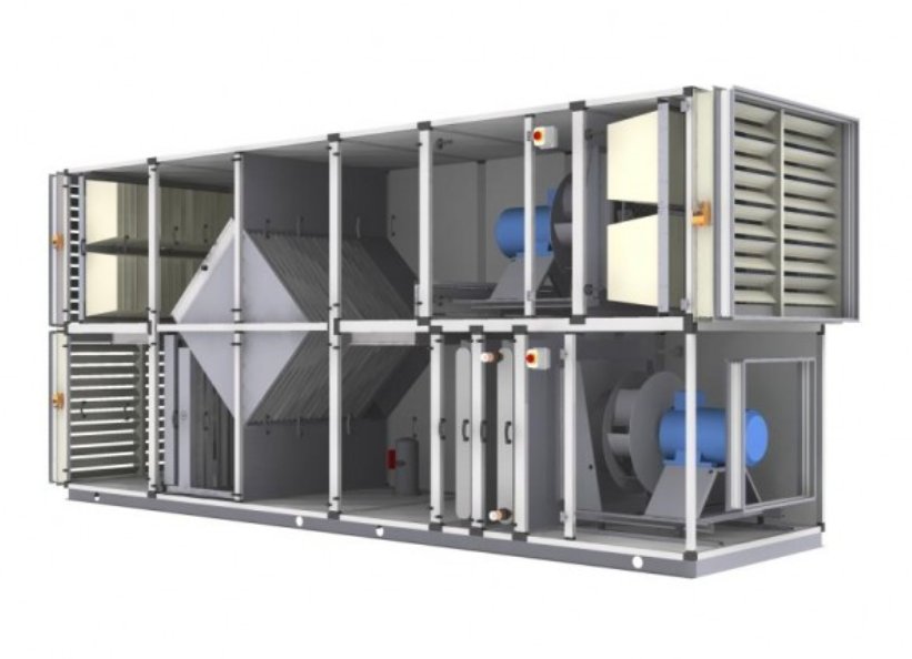 Стандартно установки комплектуются приточным и вытяжным вентиляторами, приточным и вытяжным фильтрами, пластинчатым рекуператором и системой автоматического управления с пультом дистанционного управления. Инновационный тип рекуператора позволяет подогревать и увлажнять приточный воздух, при этом специальная мембрана рекуператора переносит из вытяжного воздуха только молекулы воды, оставляя в нем все загрязнения.