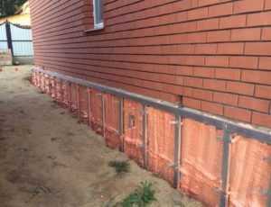 Для продления срока службы пенопласт защищается от давления почвы с помощью кирпичной стенки или профилированных полиэтиленовых мембран. Для защиты от действия влаги утепление цоколя пенопластом выполняется вместе с установкой качественной гидроизоляции. Обычно для этих целей используются жидкие изоляторы на битумно-полимерной основе или рулонные материалы.