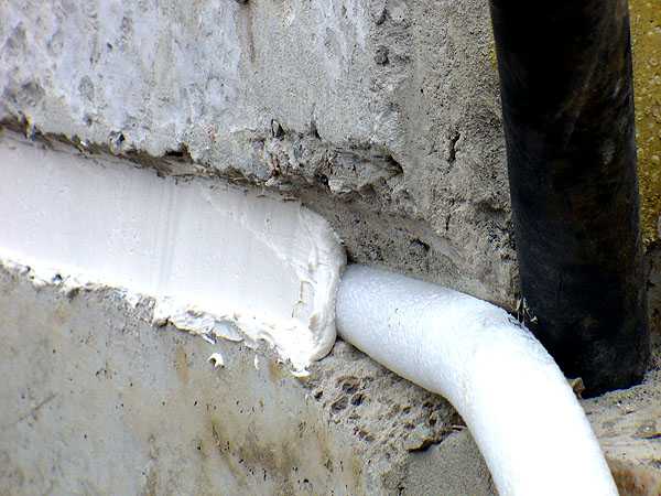 Использование монтажной пены в качестве утеплителя подкупает низкой стоимостью и простотой, а также ее способностью расширяться в отверстиях, плотно заполняя все пустоты. Но этот материал тоже имеет недостатки – пена, расширяясь и выступая наружу шва, требует срезания выступающего поверхностного слоя, который является самым прочным, а внутренняя пористая часть, становящаяся открытой, подвергается разрушительному воздействию солнца и атмосферных осадков.