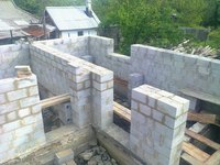 Важно помнить, что несущие и перегородочные стены возводятся одновременно. Это правило нужно соблюдать неукоснительно. Абсолютно все швы, как горизонтальные, так и вертикальные, в обязательном порядке промазываются клей-пеной или раствором.