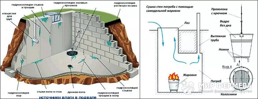 Якщо використане повітря ефективно відводиться через витяжку, і воно заміщається свіжим вуличним, то вміст вологи завжди залишатиметься в нормі; - затоплення підвальних приміщень. Сирість, особливо при поганій гідроізоляції фундаменту, достатньо швидко підіймається по стінах, не тільки малоповерхових будівель, але і багатоповерхівок;