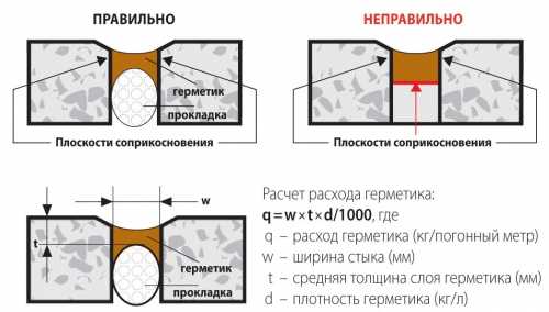 - Выбор герметизирующего материала, соответствующего климатическим условиям района эксплуатации.