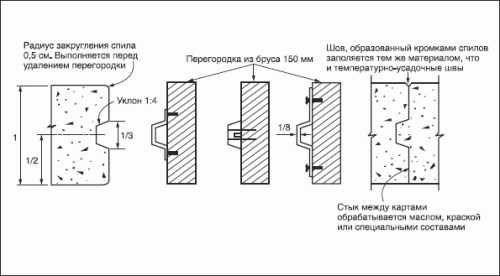 Разновидностью деформационного шва является температурный шов. Решает вопросы стяжки холодных помещений, где высокий уровень колебания температур. Часто с этой целью используют древесину, у которой хорошие деформационные свойства. Идеально подходят брус, деревянные рейки.