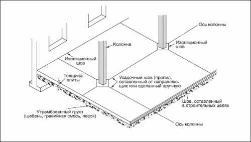 При проектировании и создании основания одним из важных мероприятий является грамотное устройство технологических швов, смягчающих деформационные колебания бетона. В их число входит три типа швов: