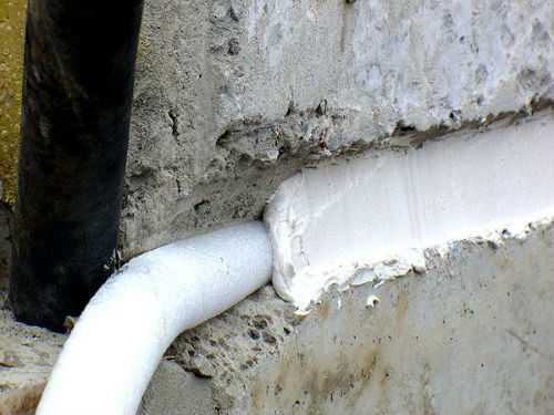 Заделка компенсационного стыкаПри работе важно учесть и то, что готовый состав быстро затвердевает. Поэтому работать с ним нужно быстро. А готовить его, лучше всего порционно.