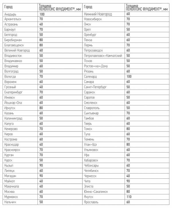 Увеличенная толщина пеноплекса до 70 мм и более используется в северных районах, где температура часто опускается до -300 С. Такой подход оправдан, тем более что обычная толщина других утеплителей достигает 150 мм.