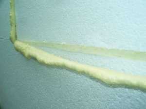 - После высыхания клеевого раствора стыки заделывают монтажной пеной.