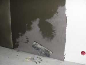 Слой наносимой шпатлевки не должен превышать 2 мм. После высыхания проводят затирку и грунтовку.