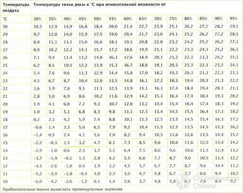Ниже вы можете рассмотреть таблицу, на которой показано как найти место появления конденсата:
