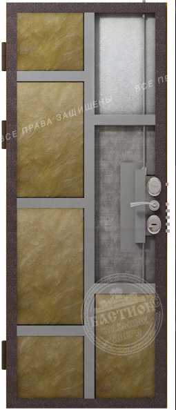 · минеральная вата – самый распространенный вариант наполнителя для входных металлических дверей, обладает отличными показателями звукоизоляции и термоизоляции, не горит, хотя со временем может проседать, а потому при укладке внутри полотна должны использоваться поддерживающие штыри, их роль могут играть ребра жесткости;