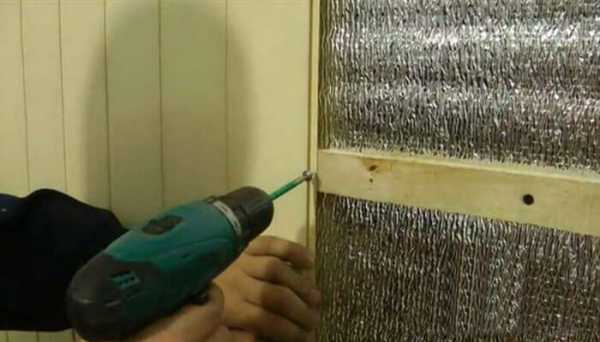 После всего этого на закрепленную фольгированную гидроизоляцию можно начинать крепить деревянную обрешетку, на которую и будет смонтирована вагонка.