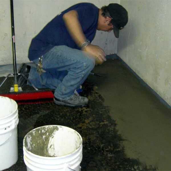 После окончания работ по гидроизоляции стен переходят к мероприятиям по гидрозащите пола, технология которых зависит от материала пола.