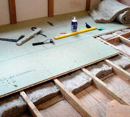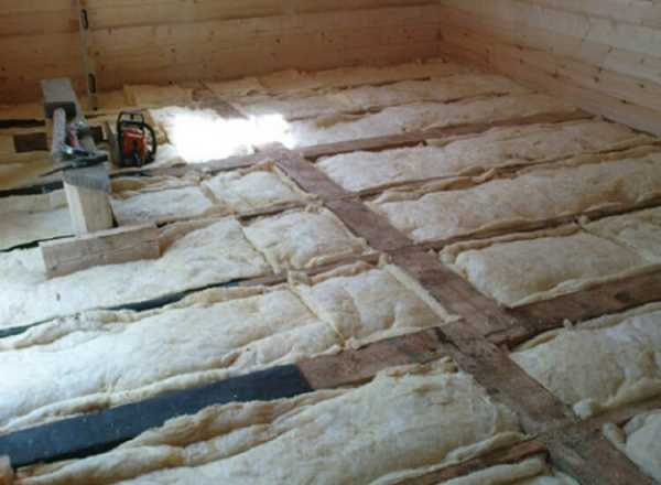 Чтобы дерево не промерзало зимой, необходимо на черновой пол настелить пару слоев толя, поверх его – утеплитель. По утеплителю стелют рубероид и заливают горячим битумом.