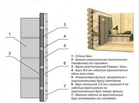 Способ крепления к стенам очень прост. Главное – не перепутать стороны, чтобы фольга получилась внутрь бани, а вспененная основа – с внешней стороны.