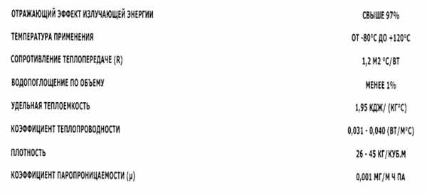 2. Коэффициент теплопроводности составляет 0,031 Вт/мК, плотность – 35 кг/м3.