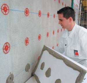 Сам же утеплитель крепится к стенке с помощью клеящего состава и физически фиксируется к поверхности дюбелями. Сам же межплиточный шов закрывают строительным скотчем, а саму пустоту заполняют пеной. Далее на сам слой утеплителя крепят армирующую сетку и ее перекрывают конечным облицовочным материалом и декорируют.