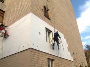 - очищение и непосредственное выравнивание фасада – данную процедуру стоит поручить опытным альпинистам;