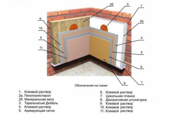 Схема утепления стены минеральной ватой.