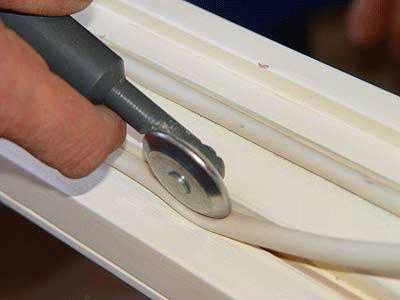 Утеплитель с фальцем устанавливается в фаску и запрессовывается. Для этого нужно купить специальный ролик, который существенно облегчит этот процесс. Не растягивайте трубку утеплителя, ведя ролик в одном направлении, его нужно двигать вперед-назад.