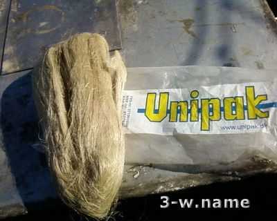 2. Отделить небольшой пучок волокон пакли от основного пучка. Пакля должна быть расчесана, т.е. без клочков и разрывов. Далее скрутить волокна в веревочку. Веревочка должна получится таких размеров, чтобы собою заполнить глубину впадин резьбы. Кстати, вместо льна можно воспользоваться сантехнической нитью или фум-лентой. Мы, опираясь на свой опыт, рекомендуем именно лен, как стабильный и проверенный временем материал.