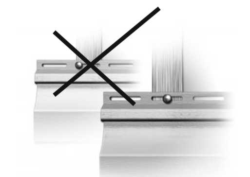 ошибки при расчете зазоров для температурного расширения. Фото №7.Обязательно нужно оставлять свободными 5–8 мм между панелью сайдинга и боковым крепежным элементом. После монтажа панели она должна свободно двигаться влево и вправо, но не болтаться.