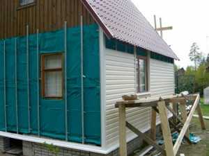 Технология монтажа сайдинга на стены из дерева или газобетона требует установки гидроизоляции и, если есть необходимость, теплоизоляции. Лучший материал для этих целей — влаговетрозащитная мембрана. Полностью подготовленные к обшивке стены можно увидеть на фото.