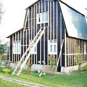 элементов. Фото №3.Утеплитель. Частный дачный дом, используемый только в весенне-летнее время, в большинстве случаев не нуждается в дополнительном утеплении. Дом, в котором живут круглый год, обычно утепляют минеральной ватой – ее закладывают снаружи здания, в ячейки, образовавшиеся между перекрытиями обрешетки.