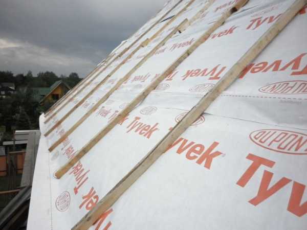 Под этим материалом необходимо оставить вентиляционное пространство толщиной до 5 см, и только затем на заранее подготовленную обрешетку фиксируется гидроизоляция в виде полимеров. Отсутствие воздушного зазора может привести к постоянному намоканию из-за конденсата, который будет стекать вниз, образуя по карнизам здания сосульки.