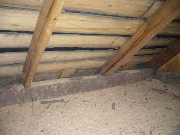 Теплоизоляция может проводиться простым способом – пол крыши засыпается древесными опилками или котельным шлаком, реже применяют соломенную сечку. Обычно достаточно насыпать слой в 5-10 см. Рядом с трубами следует избегать наличия горючих материалов. Достоинство этого метода – дешевизна и простота работ.