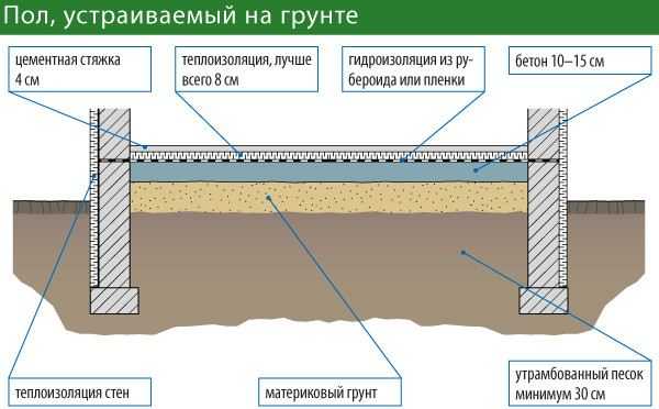 Схема устройства пола на грунте.