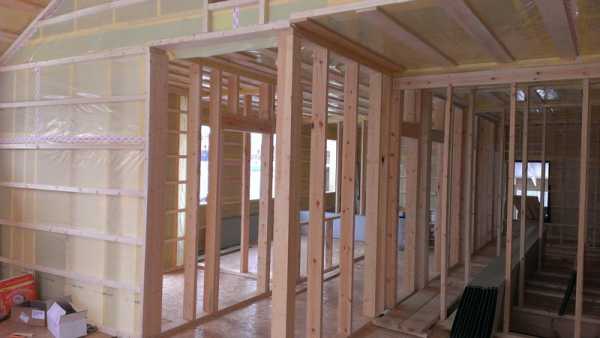 Смонтированная пароизоляция во внутренних помещениях каркасника Вернуться к оглавлению