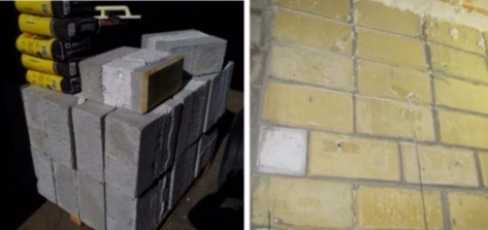 Для эксперимента были выполнены кладки толщиной 400 мм из полнотелого керамзитного блока объемной массой 1 400 кг./м³, трех щелевого керамзитного блока объемной массой 1 200 кг/м³, блока «АЛБОР», изготовленного по технологии «Капсимэт», блока «ТЕПЛОКОМПОЗИТ» с утеплителем из пенополистирола толщиной 160 мм и керамзитобетонного слоя толщиной 220 мм.