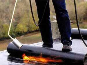 - покрытие постепенно раскатывают в направлении на себя, одновременно расплавляя его нижний слой газовой грелкой и плотно прижимая к основанию.