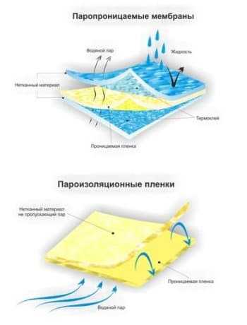 В последнее время появилась тенденция пароизоляцию именовать подкровельной плёнкой, а ветровлагоизоляцию — подкровельной мембраной. Это не совсем верное применение терминов, но так уж сложилось. Главное — в различии физических свойств этих материалов
