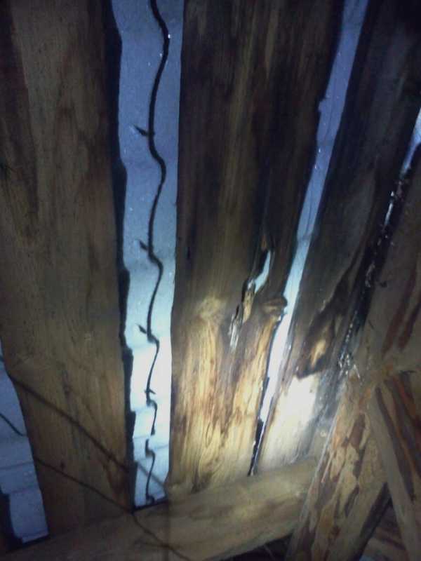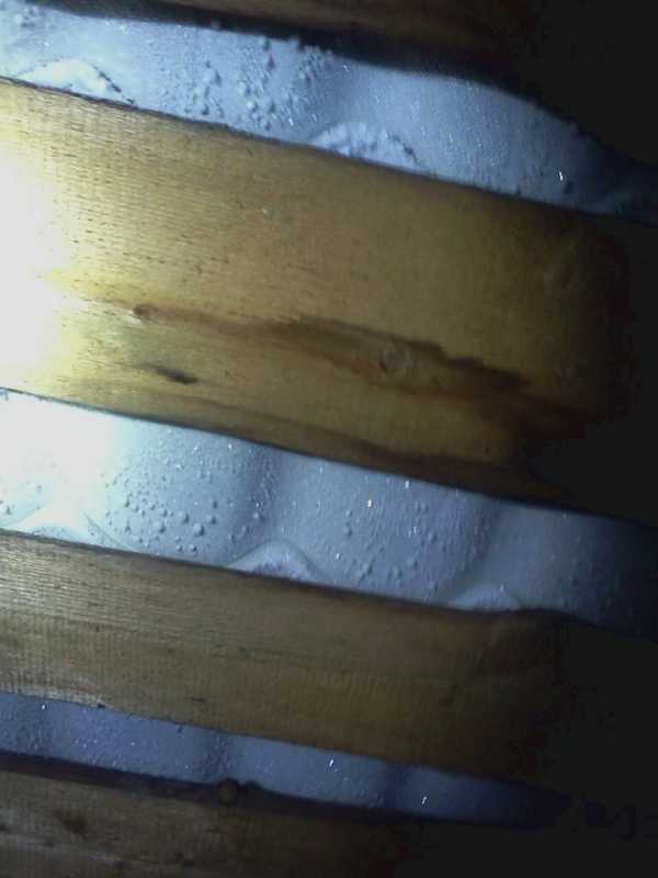 Люди купили старый дом, сняли старое железо, которое было настелено прямо на обрешетку, при этом на чердаке было оборудовано слуховое окно, а с другой стороны открытый подшив во двор, другими словами была сплошная вентиляция. По примеру предков новые хозяева настелили новую кровлю прямо на обрешетку, но, при этом, убрали слуховое окно и обшили весь дом пластиковым сайдингом. В итоге получили то, что изображено на рисунках. За 2-3 года вся обрешетка вместе со стропилами пришла в негодность. В итоге мизерная экономия привела к дорогостоящей, полной реконструкции всей крыши.