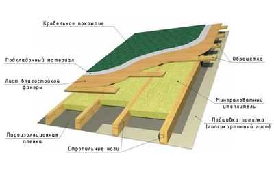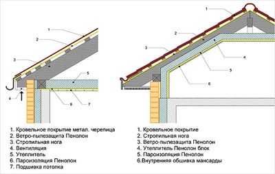 Подробная схема устройства кровельного пирога мансардной крыши