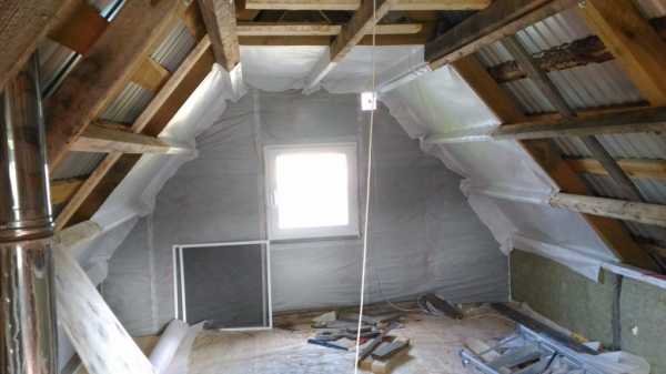 Отсекать часть чердака по горизонту. В этом случае у мансарды появляется «свой» холодный чердак, который утепляют по его перекрытию. А пароизоляцию подшивают снизу к его перекрытию (или подшивному потолку) и соединяют лентой с паронепроницаемой пленкой утепленной части ската.
