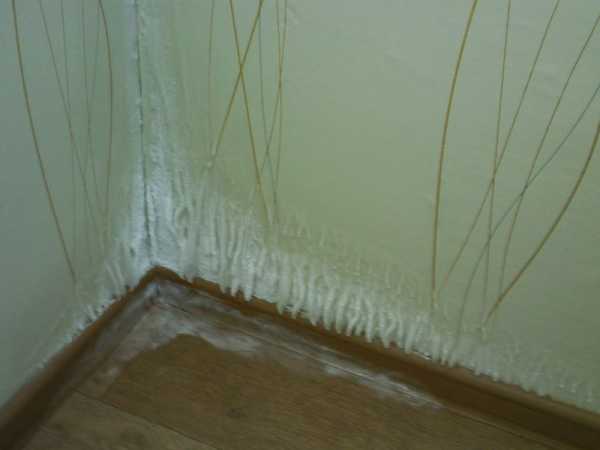 Прежде всего нужно снять обои. Если нет видимых трещин, то стены простукивают молотком — там, где есть пустоты, звук будет глухим. Далее удаляют штукатурку над обнаруженными полостями и тщательно просушивают угол. Если есть плесень, обязательно обрабатывают специальными противогрибковыми средствами. Иногда поражение плесенью столь обширно, что необходимо применение кислоты, огня паяльной лампы или фрезеровки поверхности. Все трещины и пустоты заполняют монтажной пеной или жидким пенопластом. Это исключит попадание влаги внутрь помещения даже при наличии трещин во внешней стене. И наконец, зачищают остатки пены и заштукатуривают угол. Работы лучше всего проводить в теплое время года, чтобы полностью избавиться от сырости и плесени внутри помещения.
