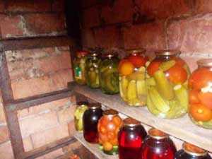 Большие и средние по размеру погреба хозяева часто оборудуют стеллажами и полками. Это очень удобно для хранения банок с консервированными овощами и фруктами. Такие стеллажи обычно делают сборно-разборными для удобства их дезинфекции вне помещения.