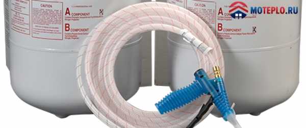 - Второй способ, это доставка в жидком виде. Так как пенополиуретан делают из двух основных компонентов, которые должны находиться в отдельных емкостях, то на место стройки доставляются специальные емкости, которые затем соединяются друг с другом, с помощью специального оборудования, материалы смешиваются и под давлением подаются наружу, образуя пену.