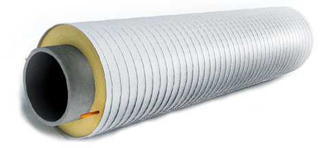 Внешняя оболочка защищает утеплитель от механических воздействий, огня и влаги. В промежуток между стальной трубой и внешней оболочкой заливается пенополиуретан. После застывания утеплителя получается готовая продукция.