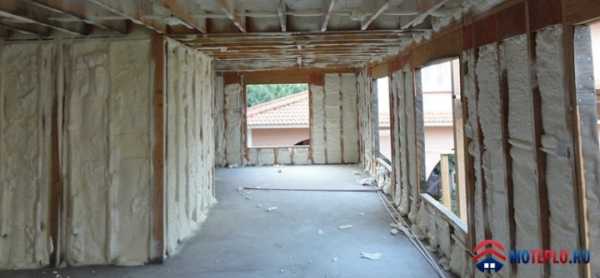 Это лучший вариант, поскольку не будет различных стыковок и естественно мостов холода. Затвердевший материал затем равняется с помощью простого ножа, по аналогии с монтажной пеной. Благодаря своим адгезионным способностям наносится жидкий пенополиуретан на любую поверхность.