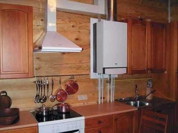 На деревянные стены газовый котел можно повесить только при наличии несгорающей подложки