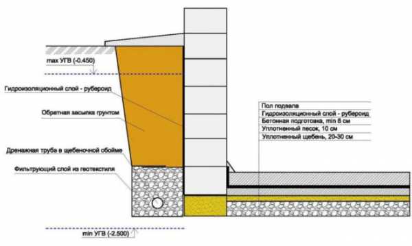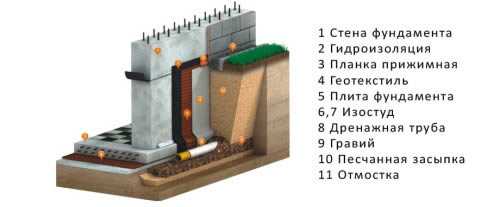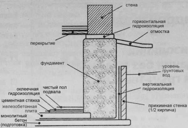 Схема гидроизоляции фундамента.