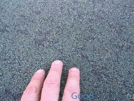 - С крупнозернистой посыпкой (каменная крошка) с лицевой и пылевидной стороны. Его укладывают только вверху кровли.