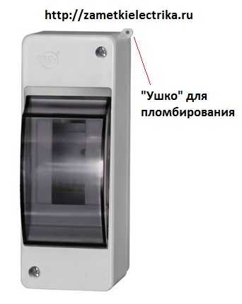 Для быстрой и безопасной замены электросчетчиков напряжением до 0,4 (кВ) необходимо установить перед ними коммутационный аппарат (автоматический выключатель, предохранители) на расстоянии не более 10 метров. Более подробно об этом читайте здесь.Чаще всего, энергоснабжающая организация видит способ хищения или обмана в установке автоматического выключателя перед счетчиком. Поэтому рекомендую заранее поместить автоматический выключатель в специальный пластиковый бокс, который имеет «ушко» для его пломбирования.