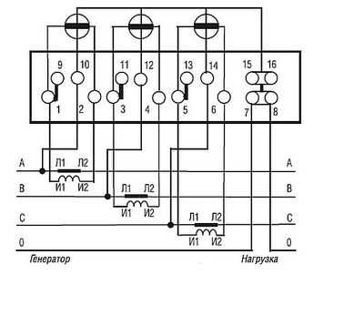 – через трансформатор напряжения и тока в четырехпроводную и трехпроводную сеть