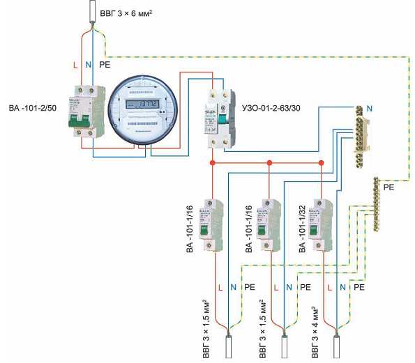 После счетчика последовательно подключают щиток с автоматами, от которых осуществляется разводка электроэнергии по дому. После выполнения всех коммутаций производят пробное включение системы.